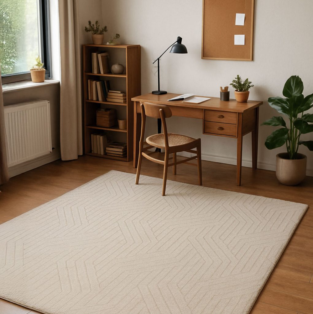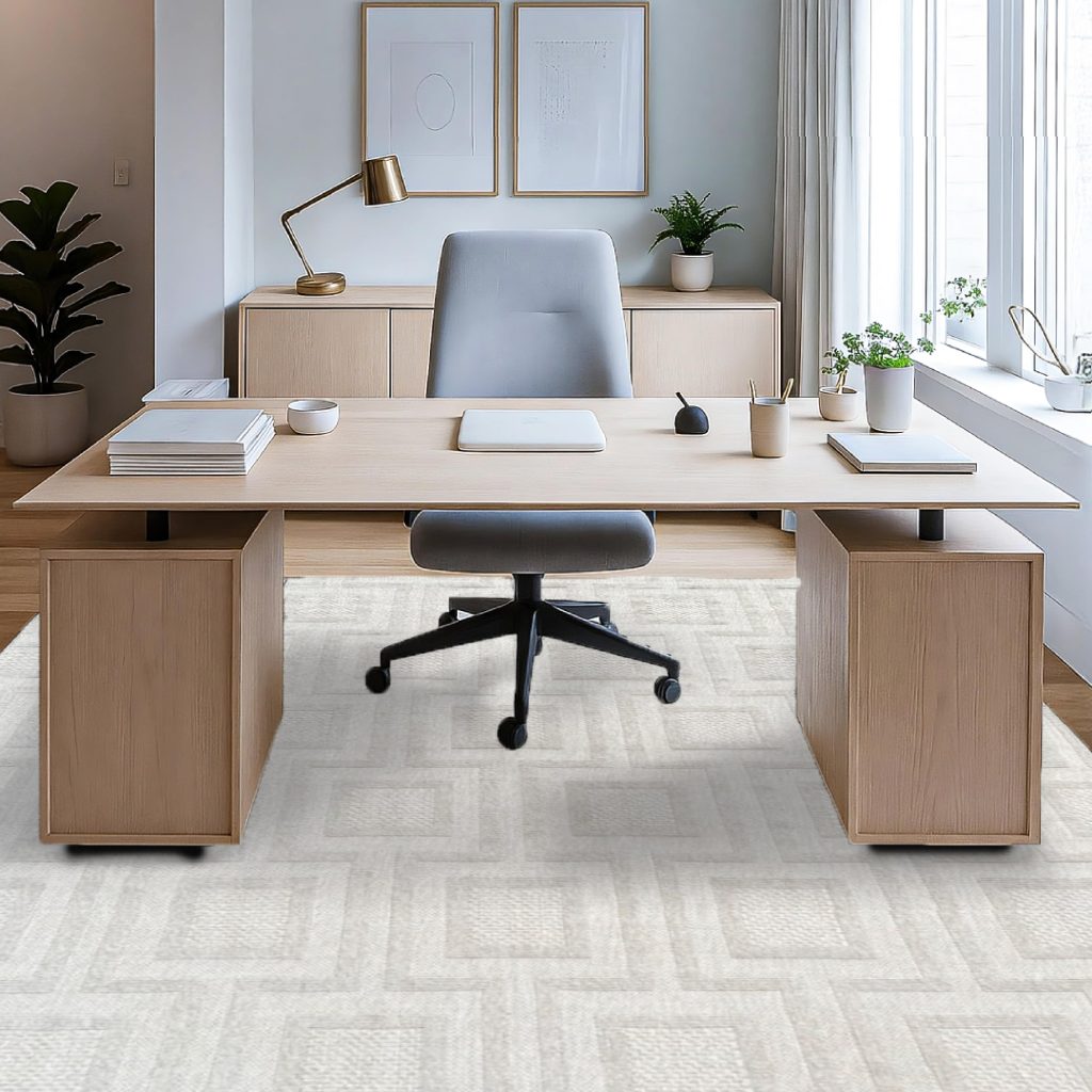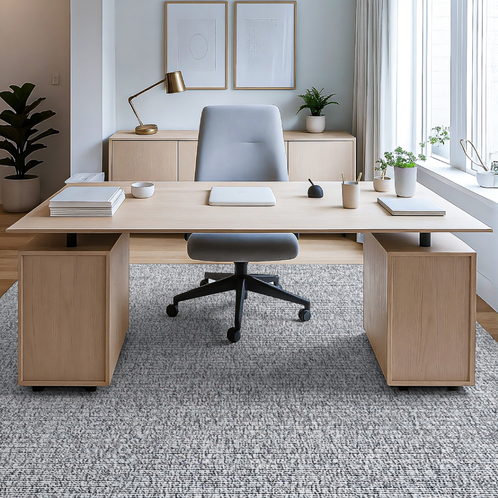 Una alfombra home office debe complementar tu decoración sin recargar el espacio. Diseños neutros, minimalistas y elegantes permiten mantener un ambiente de concentración y profesionalismo.